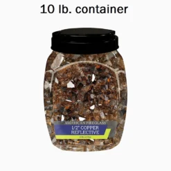 Our ½” Copper Fire Glass is not just gorgeous to behold, but also very practical. It does a great job of covering the entire floor of a fire feature, effectively hiding the unseemly pipes and tubes that are sometimes visible in gas fireplaces and fire pits. This makes fire glass a more desirable alternative to the more commonly seen ceramic logs and fire stones. This reflective fire glass is tempered in order to withstand temperatures of up to 1300° Fahrenheit and harsh weather without losing its color or shape.