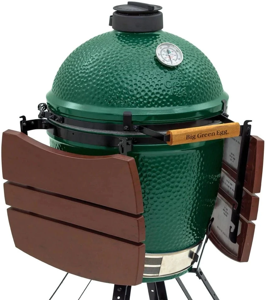 EGG MatesĀ® are a simple and convenient addition to Big Green Eggs, providing a working and serving area right where you need it. The Big Green Egg Composite 3 Slat EGG MatesĀ® feature a non-slip textured surface, wider side profile, subtle wood-grain detailing and the attractive Big Green Egg logo. Providing an unmatched working and serving area for an EGG in a Nest, the Composite Mates are engineered to offer significant improvements over wood or āplasticā materials.