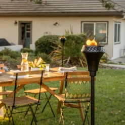 If you spend as much time relaxing and entertaining outside as you do inside, then adding the ambiance of natural flame lighting with the Island King TIKI® Torch large flame torch to your outdoor living room will make your summertime gatherings even more enjoyable. The uniquely designed torch bowl keeps the flame burning big and bright, even in the wind. With its twist and pour™ technology, you simply twist the top to expose the fill hole, pour in your torch fuel and then twist to close, providing quicker refills and less mess.