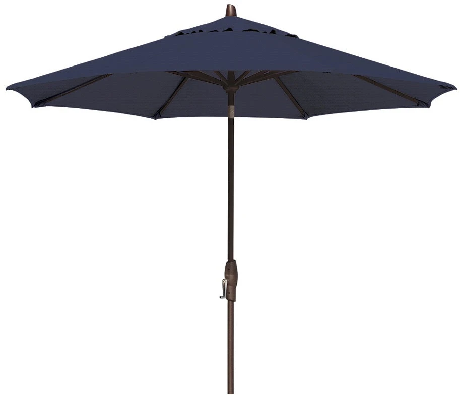 The deluxe crank 9′ Auto Tilt Market Bronze Frame Indigo Canopy Umbrella Thin Pole is our best-selling style. This umbrella has a multiple-tilt feature that utilizes the crank handle to raise/lower the umbrella and adjust the angle of the canopy for the desired shade.