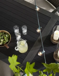 - Tabletops feature the real-wood look of Resysta® – a low maintenance and sustainable, revolutionary material made mostly of rice husk that is water-resistant, weatherproof, UV-resistant, fade-resistant, chip-resistant and 100% recyclable
