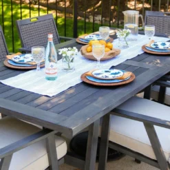 Coordinating the perfect outdoor space is a breeze when you have a mix of the elegant dining and deep seating found in the Albany Dining Collection. These patio furniture sets bring motion seating and specially formulated outdoor cushions to give you a completely put-together look that will showcase your flair for entertaining for years to come.