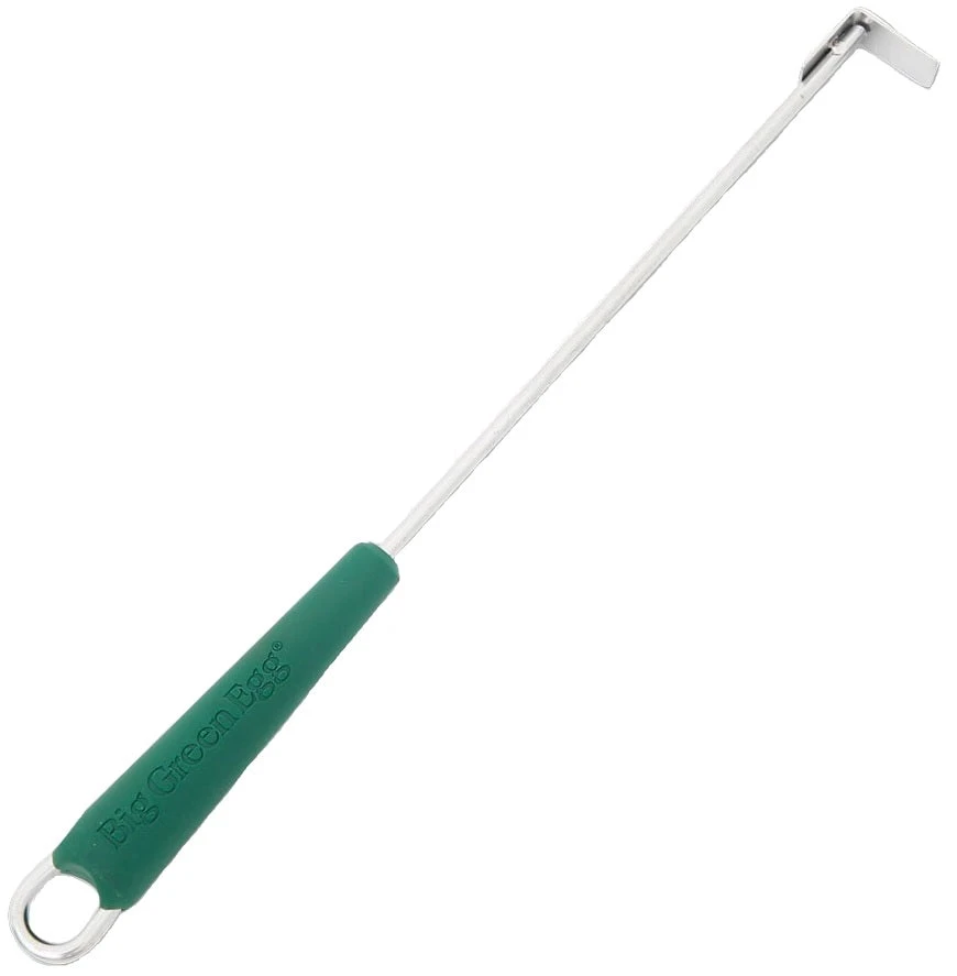 The Big Green Egg Ash Tool is the perfect utensil for removing the small amount of ash that collects at the bottom of the EGG. Using the bar at the end of the Ash Tool, you simply pull the ash out of the Stainless Steel Draft Door.
