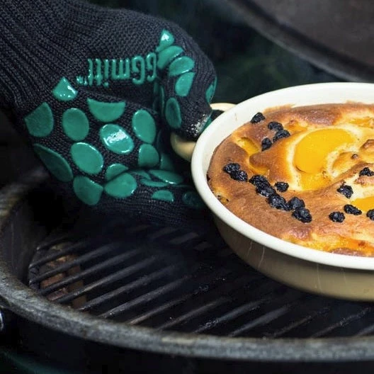 This ultimate EGGMitt® from Big Green Egg is made with durable, heat-resistant fibers and features a soft cotton lining with a silicone textured surface for easy grip. Withstands extreme heat up to 475°F/246°C for maximum protection and comfort.