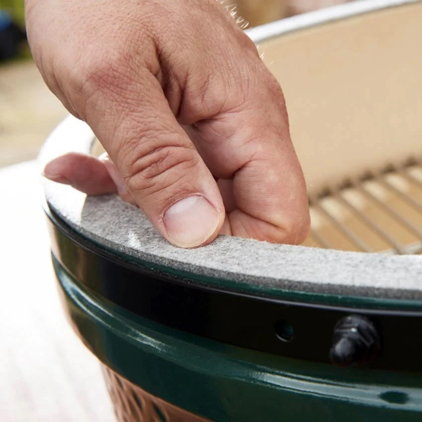 The heat-sealing gasket material installed on a Big Green Egg is designed to last for years under normal operating conditions. However, if the felt gasket shows signs of excessive wear or deterioration, it can easily be replaced using the new Big Green Egg High Performance Gasket Kit.