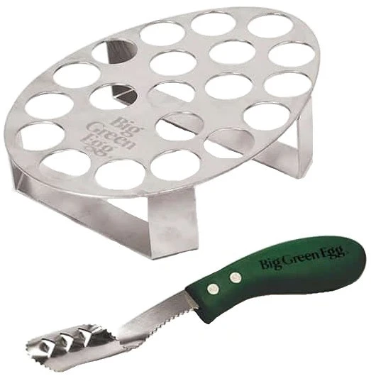 Heavyweight, stainless steel Grill Rack and Corer Set from Big Green Egg keeps jalapeno poppers upright to easily add fillings. Includes a serrated corer to trim peppers and easily scoop out pulp and seeds.