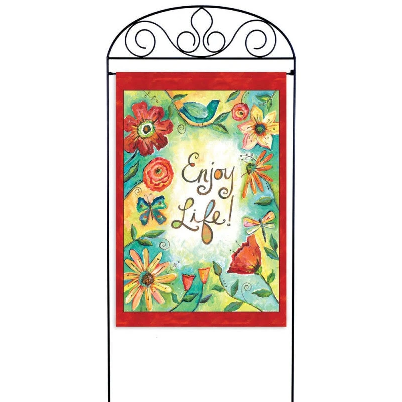 - Holds a garden size flag in the center using a rod under the beautiful metal swirl designs