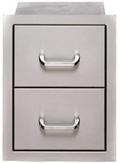 The Bull Grill Accessory Double Storage Drawers have 304 Grade, 16 Gauge Stainless Steel and fully enclosed drawer components for easy storage of grilling accessories and cleaning products.