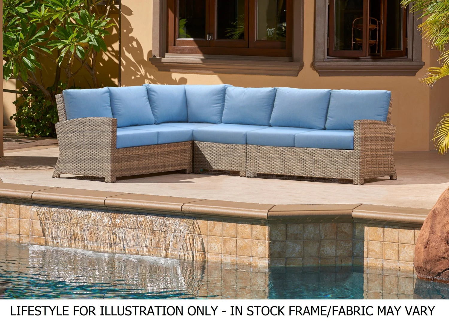 - 6″ thick Outdoor cushions with Sunbrella fabrics included