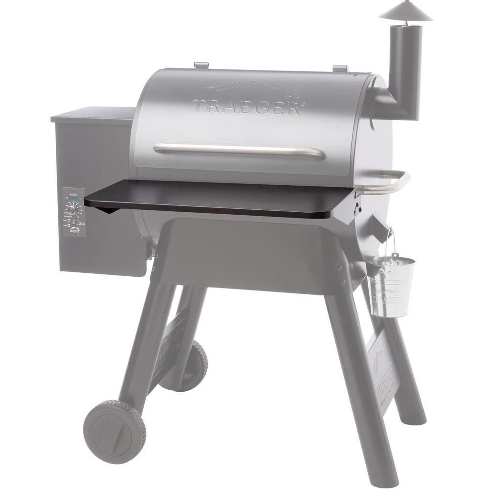 Traeger’s Folding Front Shelf is simple to install, folding down when you don’t need it, while still leaving room to fit under our grill covers. Made of 100% steel, this shelf easily adds more real estate to your grill. Place a cold drink down, and still have space for a cutting board and utensils. Prep like a pro!