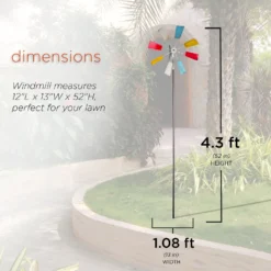 Add a touch of ambience to your patio, lawn or garden with our Multi-Colored Metal Windmill Spinner Stake Yard Decoration. This durable, colorful spinner is made of metal to withstand the harshest wind conditions and last throughout all seasons. The multi-color blades capture and reflect the light as they spin, giving a beautiful blend of moving colors to any outdoor space.