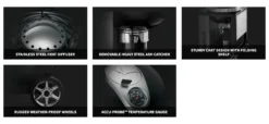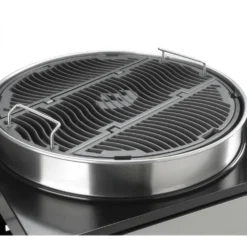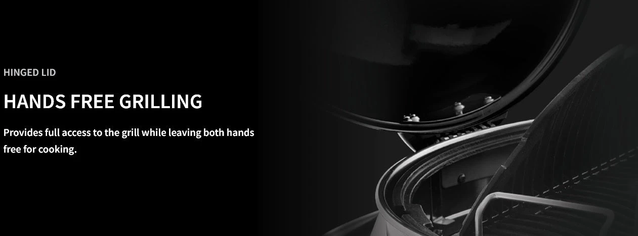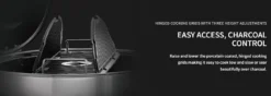 - Raise and lower the porcelain-coated, hinged cooking grids making it easy to cook low and slow or sear beautifully over charcoal