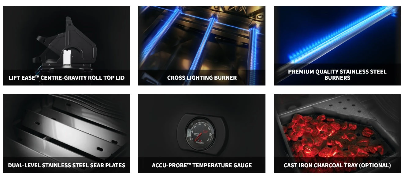 - Lift Ease™ Centre-Gravity Roll Top Lid: This specially built lid uses centre-gravity to lift smoothly without extending past the back of the grill, saving space