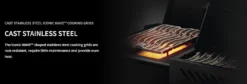 - Porcelainized to resist rust, the cast iron Iconic Wave™ cooking grids provide even heat transfer and a great sear