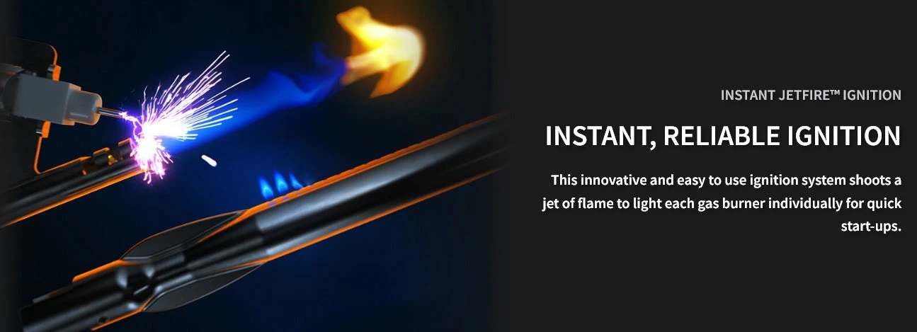 - Instant JetFire™ Ignition: This innovative and easy to use ignition system shoots a jet of flame to light each gas burner individually for quick start-ups