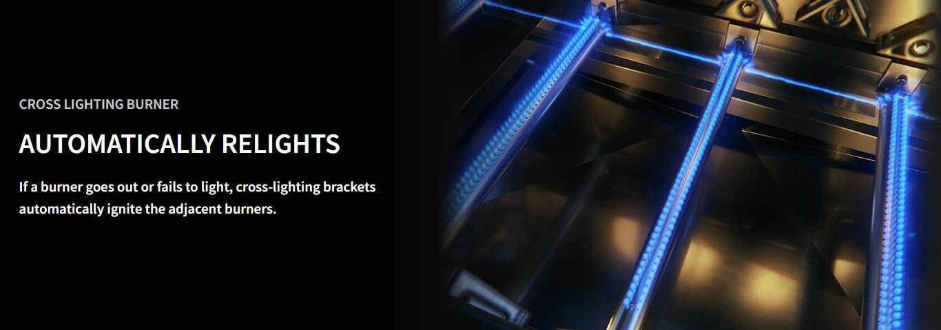 - Instant JetFire™ Ignition shoots a jet of flame to light each gas burner individually for quick start-ups