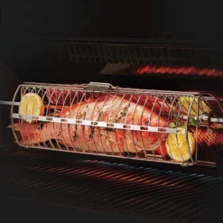 Napoleon’s Rotisserie Rack Accessory provides a premium accessory for use with your grill. The unique dual-cage design holds delicate foods in place for increased capacity and even heating. Evenly rotisserie roast whole fish, ribs, chicken, lamb chops and so much more.