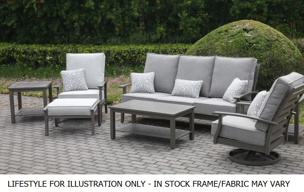 This Palmdale Patio Deep Seating & Chat Grouping has a classic, transitional design that complements a broad range of architectural styles. Striking and sturdy, all pieces are generously proportioned, comfortable and expertly constructed.
