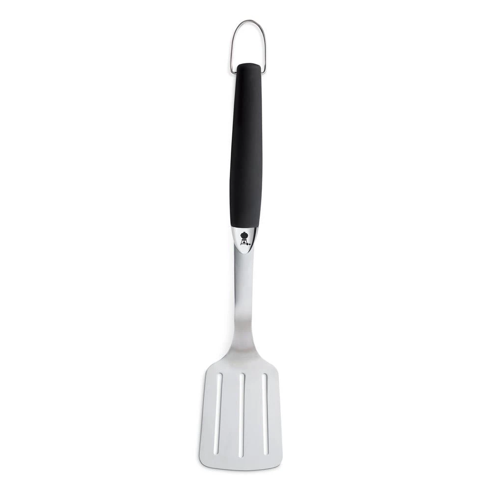 Thin enough to get cleanly under your food and strong enough to last, this grilling spatula is all that it needs to be and more. The Premium Weber Stainless Steel Spatula is long enough to keep your hand far from the flame, and has a soft, no-slip handle to flip juicy burgers and transfer them from the cooking grates to your plate.