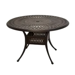 Bring enhanced visual appeal to your favorite outdoor seating space with this traditional Stafford Cast Aluminum Cushioned Patio Dining Sets. Intersecting circles create a unique lattice-style backrest, while the gently curved, scrolled arms and slightly flared legs lend distinct character.