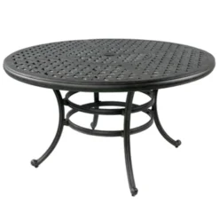 - Cast aluminum table tops with rust-free extruded aluminum frames and legs
