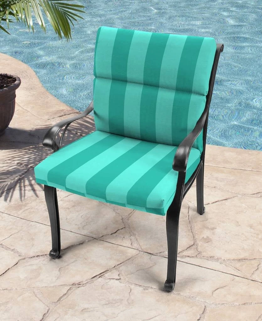 This luxurious Stripe Lagoon Universal Replacement Chair Cushion will instantly become your new favorite seat in the house.