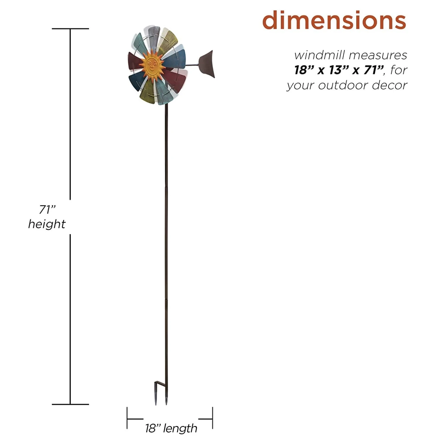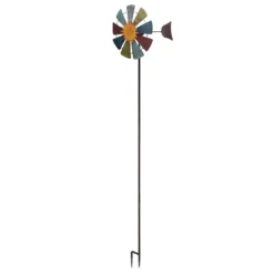 Transform your garden into a gallery of movement and beauty with Alpine’s Sun Face Multi-Color Windmill Stake. This fun and durable spinner is made of iron to withstand the harshest wind conditions and was built to last throughout all seasons. The colors blend together as the wind swirls the spinners to create a beautiful, colorful collage.