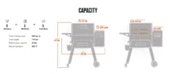 - Total cooking capacity of 650 sq. in. (for example: 8 chickens, 5 rib racks and 6 pork butts)
