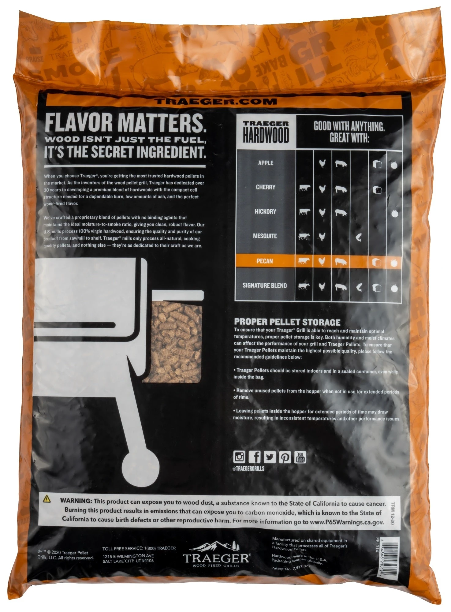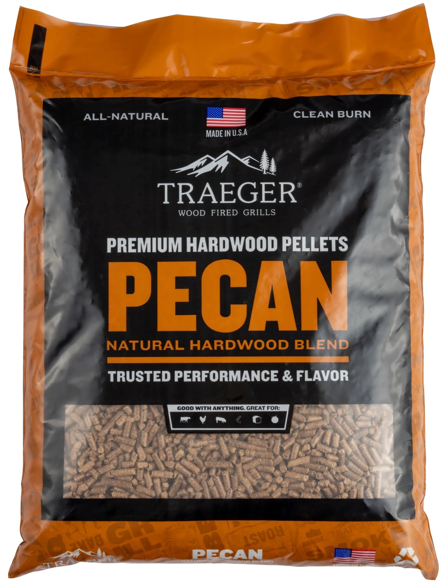 Our expertly crafted, all-natural Pecan Hardwood Pellets from Traeger burn slow and steady every time. The Traeger moisture to smoke ratio stays at 5% (aka, the sweet spot), which means your food gets a thick and even lick of flavorful smoke. This fuel is the right choice for naturally augmenting food with sweet, spicy, assertive flavor.