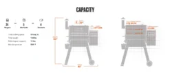 - Total cooking capacity of 575 sq. in. (for example: 4 chickens, 5 rib racks and 24 burgers)