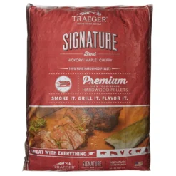 The flavors of hickory, maple, and cherry hardwoods combine for a blend that can take on just about anything you cook. From classic BBQ meats, to fish and veggies, this versatile Signature Blend 20 lb. Bag of Wood Pellets from Traeger gives you full-bodied flavor you’ll go back to time and time again.