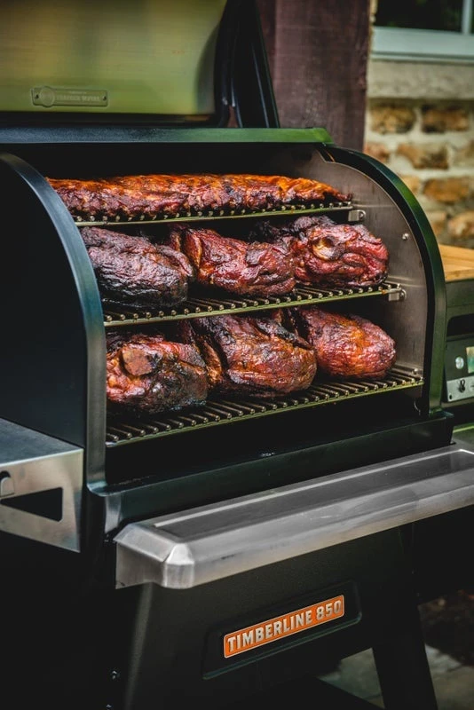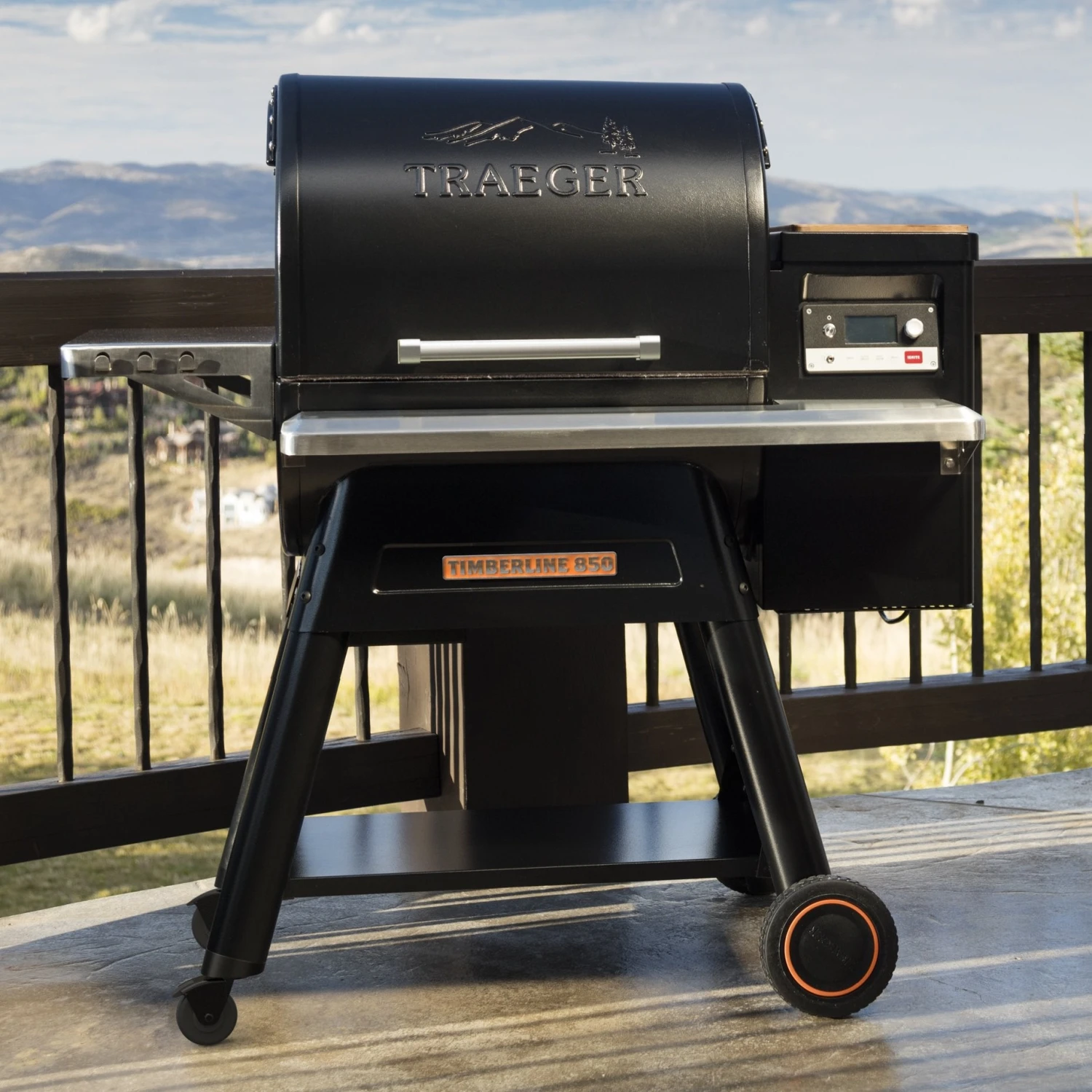The premier outdoor cooking solution, the Traeger Timberline 850 Pellet Grill pushes the limits of what’s possible in grilling technology. Book your ticket to the hall of flame with unrivaled wood-fired flavor, every time you fire up the mighty Timberline. This grill is built to outlast the competition from the ground up with a rock-solid sawhorse-style chassis, all-terrain wheels and a black powder-coat finish.