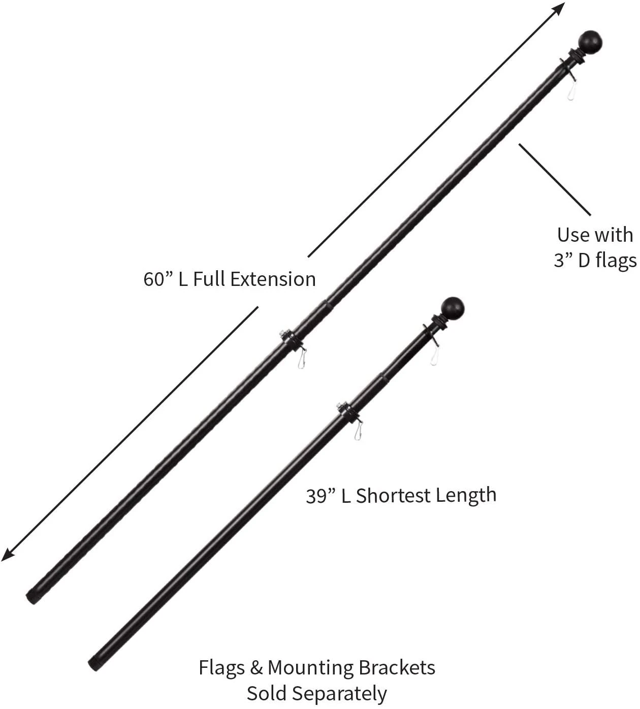 Let your favorite flag fly high with the help of our Extendable House Flag Pole. Made of powder-coated, weather-resistant metal for long-lasting use, this pole gives a timeless and classic look to any flag you want to proudly display. This product includes an anti-slip clip to keep flags in place. Compatible with all house and estate size flags, the pole extends from 35 to 60 inches in length. Unscrew the cast-iron finial to easy slide a flag onto the pole. It’s perfect for campsites, tailgates, parades and more!