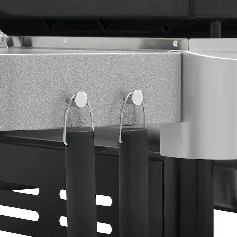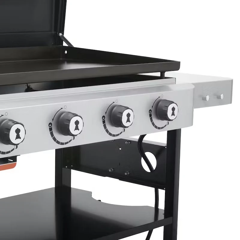 This spacious griddle includes 2 side tables to prep, serve and keep tools handy, while the griddle itself gives you space to cook an entire meal at once, so all of your food is ready at the same time. Its high-capacity grease management system helps prevent spills, making cleanup a snap.