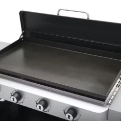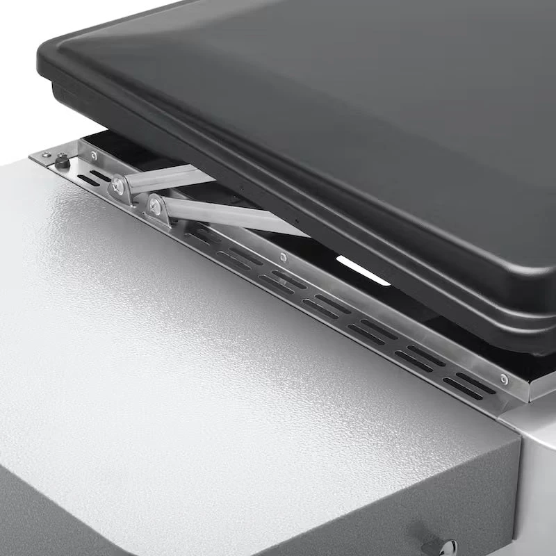 - Hinged hard cover helps protect griddle from the elements between cooks