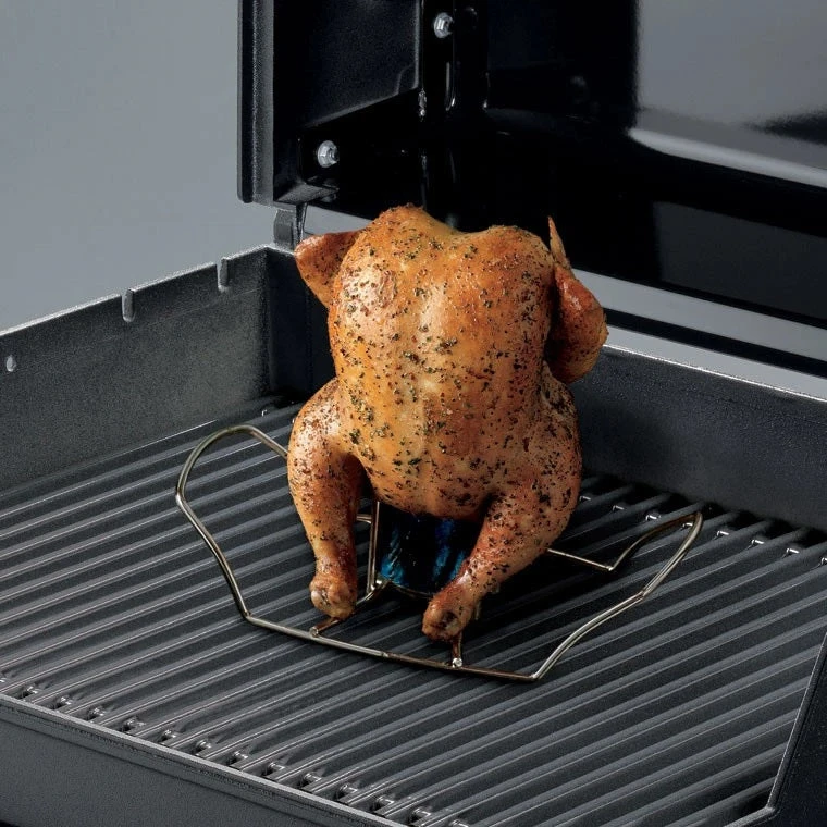 Prepare a crowd-pleasing beer can chicken with the easy-to-use Poultry Roaster. The Poultry Roaster from WeberĀ creates crispy skin and moist tender meat. Simply place a 12 oz. can of your favorite beer or beverage in the center ring and place the chicken over the can.