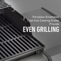 - Porcelain-enameled cast-iron grates retain heat for even grilling