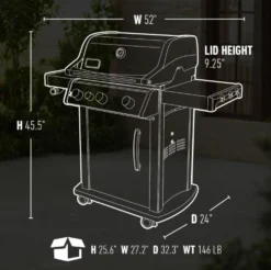 The Spirit E-330 Grill from Weber includes a handy 10,000 BTU side burner for cooking accompaniments and a 7,500 Sear Station Burner that boots heat to quickly sear foods, then turns off for regular grilling. Other features include long-lasting porcelain-enameled cooking grates and porcelain-enameled Flavorizer Bars. Those serve to catch and vaporize food drippings, creating the smoke that flavors food.