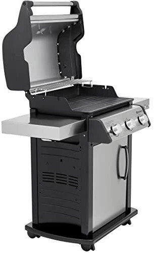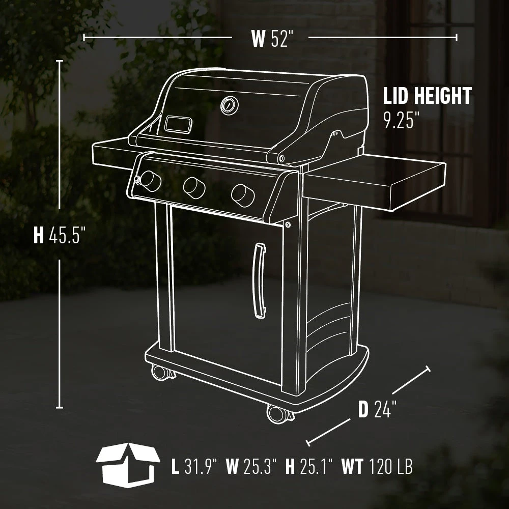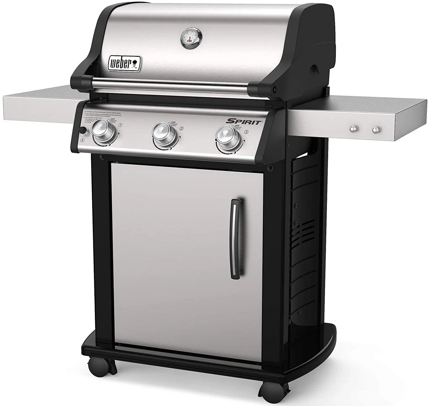 The 3-burner Weber Spirit S-315 Grill is ideal for entertaining a crowd. Use the convenient side tables for placing serving trays, while grilling tools hang from the tool hooks. Designed with sleek stainless steel, ample cooking area and porcelain-enamel cast-iron cooking grates for the best sear.