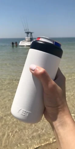 The new Rambler® 12 oz. Colster Slim from YETI is a perfect way to keep your 12oz. can of hard seltzer cold for as long as you need it to. Double Wall Vacuum Insulation delivers the upmost of insulation so your beverage of choice will stay refreshing as you sit around the campfire, as you ride on the boat or just lounge around the yard. The new Load-and-Lock Gasket only requires a quarter turn to secure your drink.